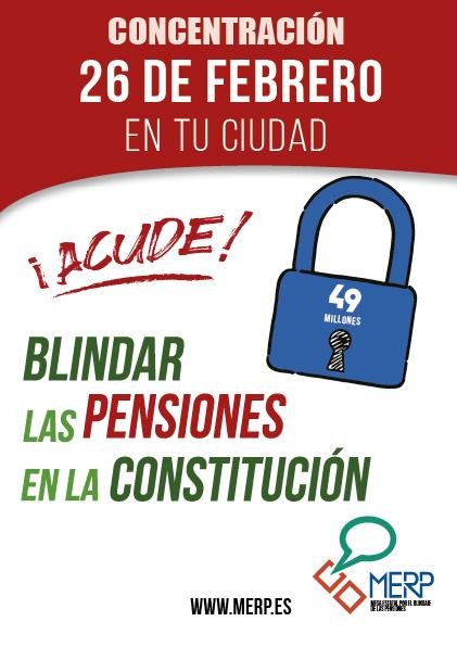 La Mesa Estatal por el Blindaje de las Pensiones (MERP) es ya un amplio movimiento social, presente en todo el país, en el que confluyen cientos de organizaciones y miles de profesionales, de muy diversas ideologías, sensibilidades políticas y credos religiosos unidas en torno a un único punto: Blindar las Pensiones en la Constitución.